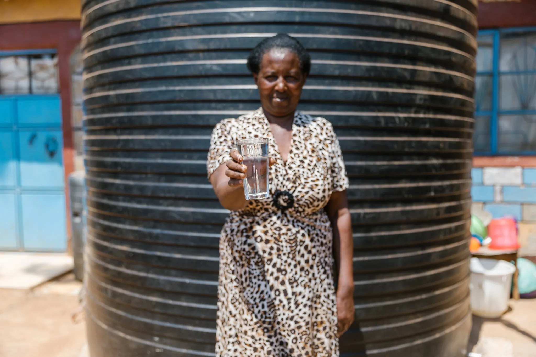 Alice lives in a remote farming village in Kenya with little to no access to a local water utility. Like Daniel and Dorcus, Alice financed an affordable solution to her family’s water crisis. For 2,000 Kenyan shillings a month, about $19 USD, Alice purchased two rain storage tanks for her property. In less than 36 months she will pay the loan off. Alice and her children now have safe, readily available water just a few feet from their front door, rather than miles from home.