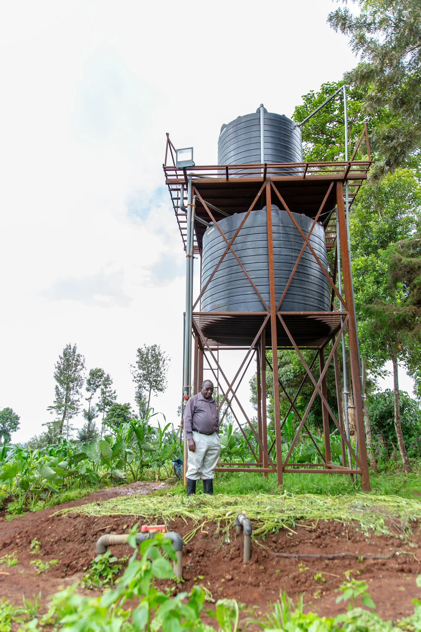 Saphia monitors the pressure of water from his well that is channeled into storage tanks on his property.